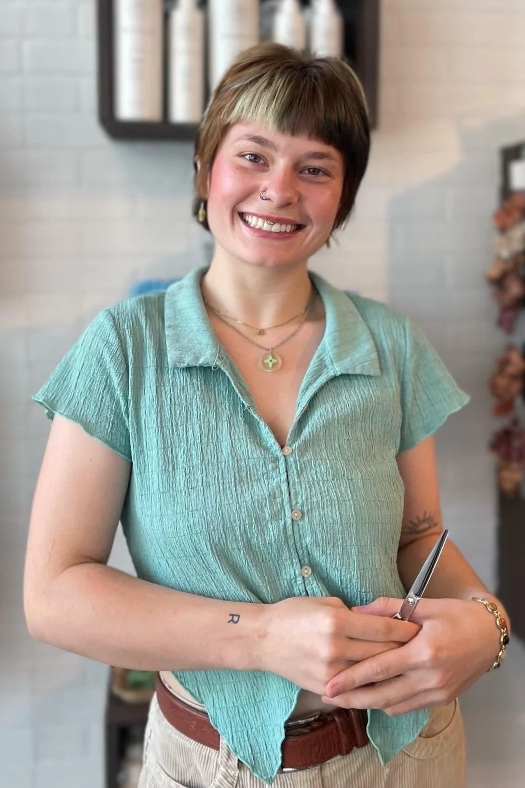 She creates an inclusive and safe space in her chair, and welcomes kids, neurodivergent folx, and those who feel anxiety around haircuts.