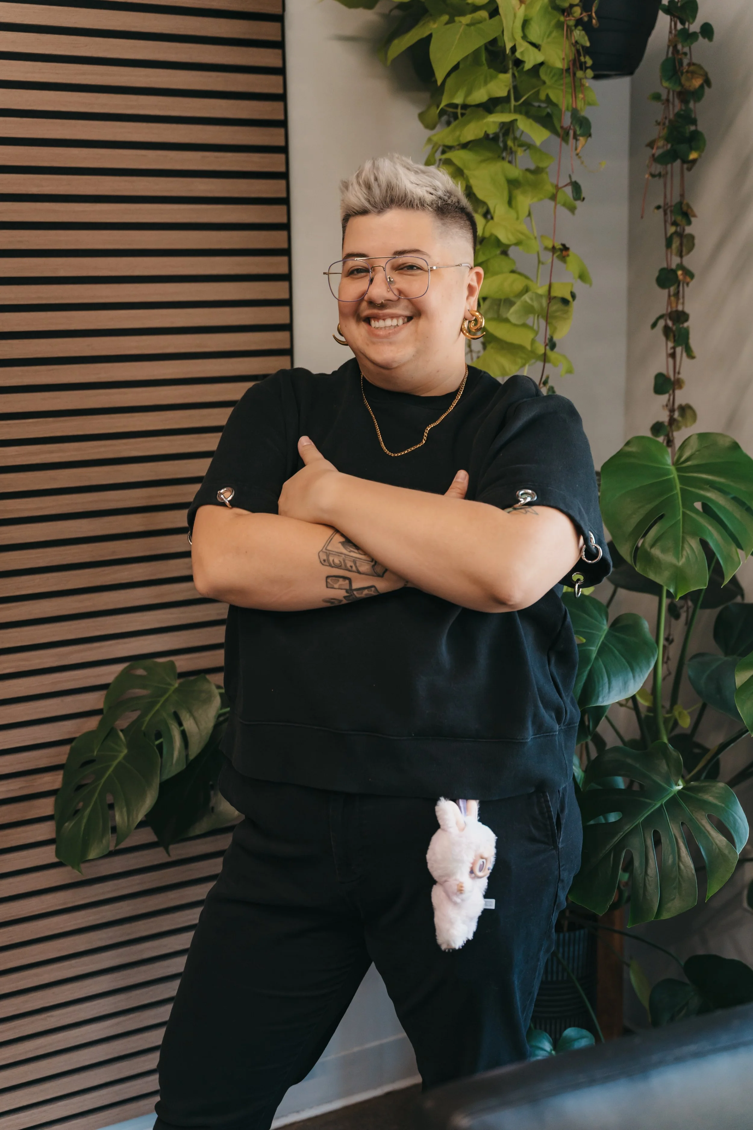 When he's not behind the chair, you can catch Jem hanging out with his partners, snuggling his two cats, dancing to live music, and playing D&D. You can find him on Instagram and see more of his work @looksbyjem
